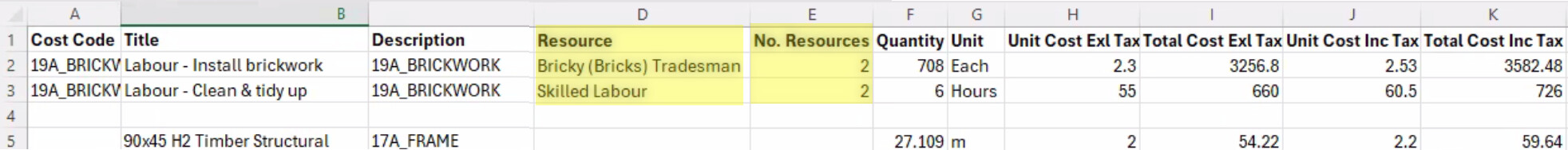 There are several potential options in the estimating export tool. Having tried them all, I’m not sure if it’s me, but they don’t seem to produce a very useful output. By this, I mean lines are repeated, things don’t seem to line up, 3 and 4 decimal places, cost codes are missing, and it’s hard to follow how things are calculated. The best output from me is the Buildtrend export.