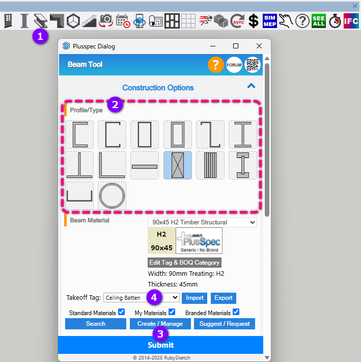 Beam Tool under one of the profiles/types, select the desired Takeoff Tag for the beam & then draw the battens*.*